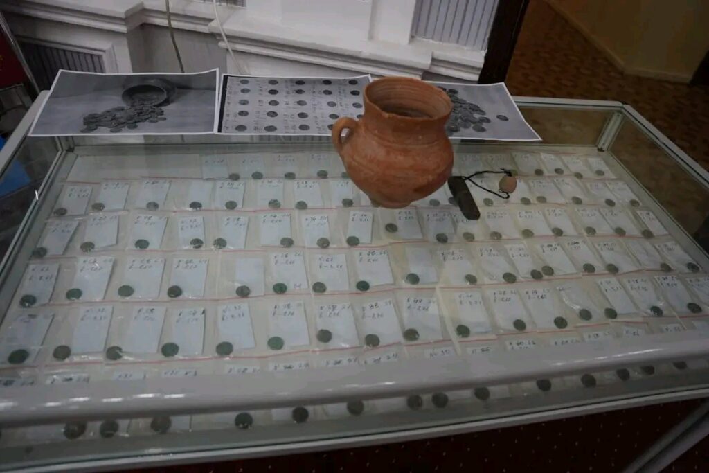 Как сообщает asia+, по его словам, клад был найден местным жителем во время хозяйственных работ. В земле оказался керамический сосуд с окислившимися монетами. После этого в район направили специалистов, а находку передали в НАНТ.
