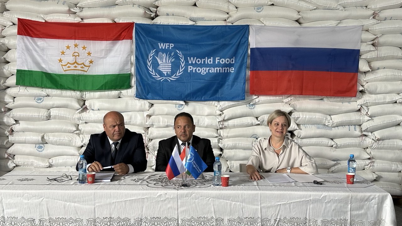 Церемония передачи прибывшей из России очередной партии гуманитарной помощи от Российской Федерации, предназначенной для реализации Программы школьного питания ВПП ООН в Таджикистане, состоялась 14 августа в Душанбе.
