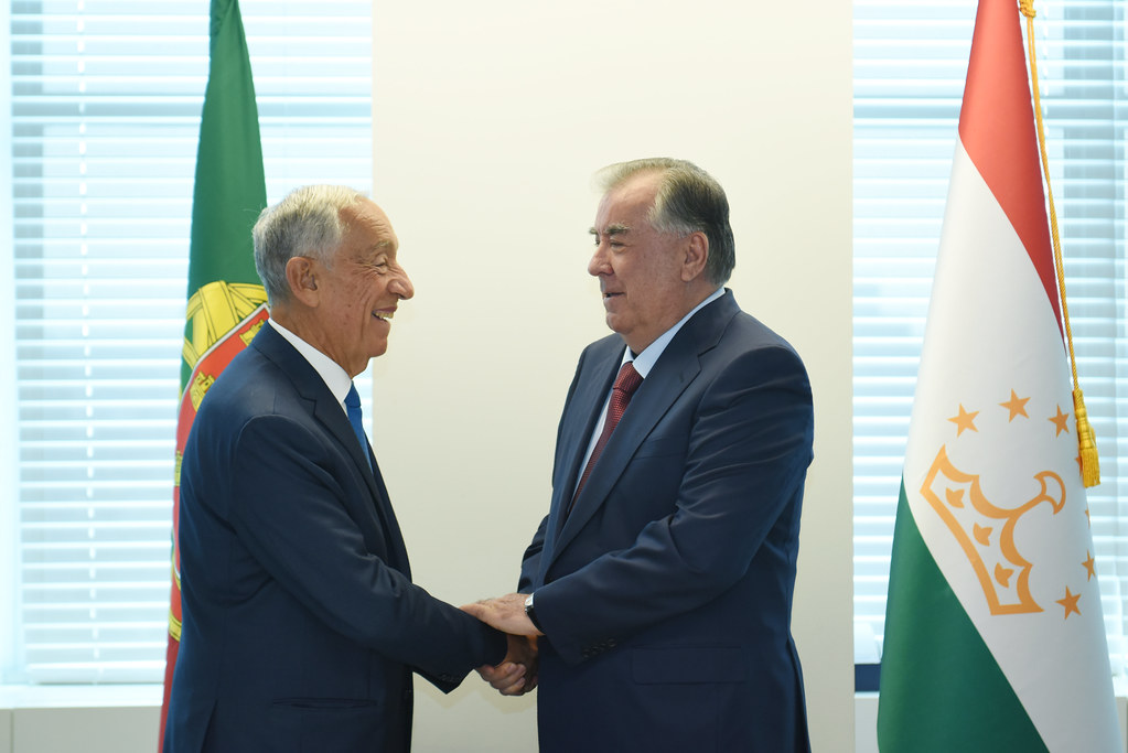 22 сентября Президент Республики Таджикистан, Лидер нации, уважаемый Эмомали Рахмон, в Нью-Йорке в рамках дебатов 80-й сессии Генеральной Ассамблеи Организации Объединённых Наций встретился с Президентом Португальской Республики, уважаемым Марселу Ребелу де Соуза.