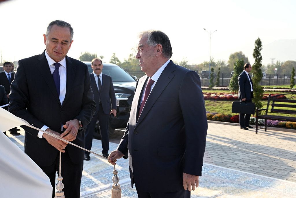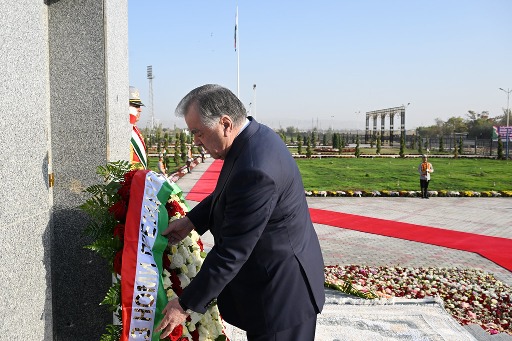 Рабочая поездка Главы государства уважаемого Эмомали Рахмона началась с открытия площади Государственного флага и герба, построенной на 3,3 гектарах.