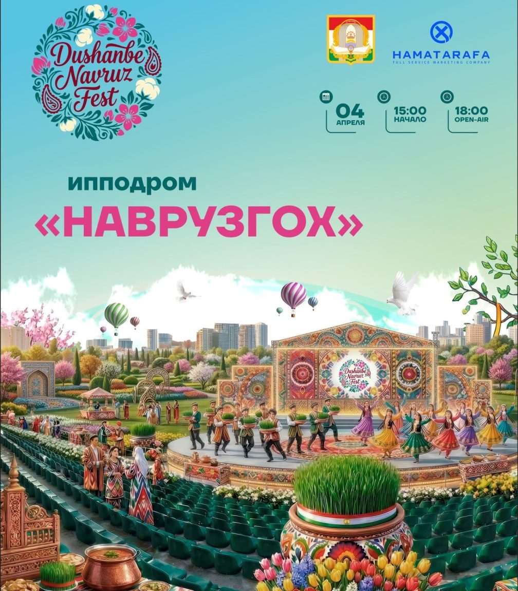 С 15:00 до 22:00 в Государственном учреждении «Наврузгох» состоится фестиваль «Dushanbe Navruz Fest» в формате open-air. Для жителей и гостей столицы подготовлены концертная программа с участием артистов, развлекательные мероприятия, выставка-продажа изделий народных ремёсел и национальные угощения.