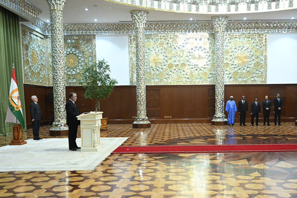 Зимни маросим ба Президенти кишвар муҳтарам Эмомалӣ Раҳмон сафирони фавқулода ва мухтори Ҷумҳурии Исломии Покистон Ирфон Аҳмед, Подшоҳии Арабистони Саудӣ Холид ибни Абдулло Аш-Шамронӣ, Ҷумҳурии Арабии Миср Тамер Фатхӣ Абдуссалом Ҳаммад, Ҷумҳурии Италия Гвидо Де Санктис, Шоҳигарии Белгия Эрик Де Майер, Ҷумҳурии Демократии Сотсиалистии Шри Ланка Фред Сеневиратне, Ҷумҳурии Зимбабве Грей Маронгве, Ҷумҳурии Малӣ Сейду Камиссоко ва Гвинеяи Экваторӣ Ндонг Айекаба Лусиано Нкого эътимодномаҳои худро бо паёму дуруд аз роҳбарияти кишварҳояшон тақдим карданд.